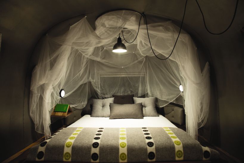 The Grolsch airstreams unique features consist of a number of innovative magnetic elements including a 360-degree magnetic puzzle which doubles as wallpaper, a clock which tells time through the movement of iron fillings pulled by magnets; and a life-sized pin wall, handmade with over 40 000 metal pins. The Airstream is also fully air-conditioned with a fully kitted bathroom adjoined and houses a queen size bed. I just wish they supplied a few cases of Grolsch when they rent it out.