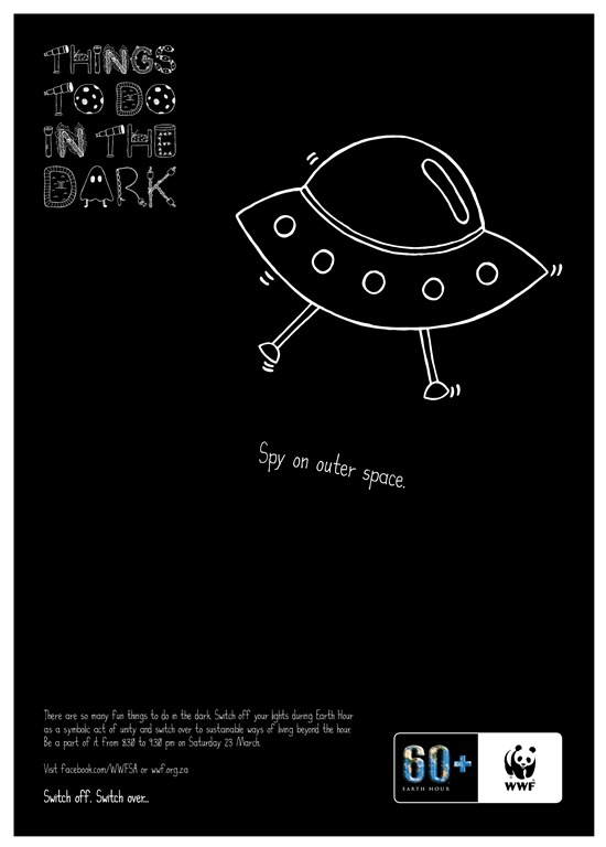 We (Ogilvy Cape Town) recently launched a new campaign for WWF’s Earth Hour (from 8.30-9.30pm on Saturday 23 March) called ‘Things To Do In The Dark’. The campaign is centred around celebrating Earth Hour in a fun and exciting way; making it an initiative that is accessible and something that all South Africans can get involved in.